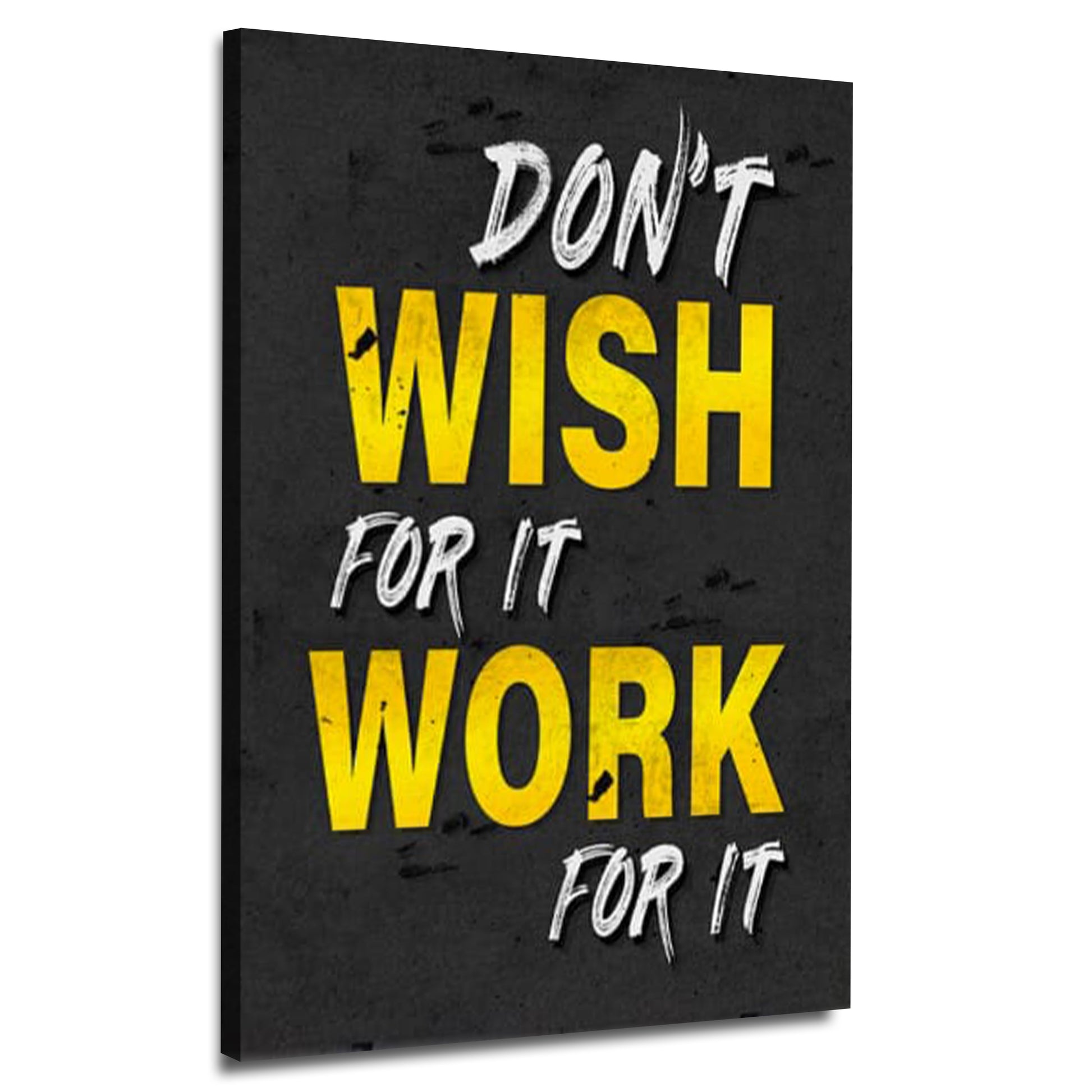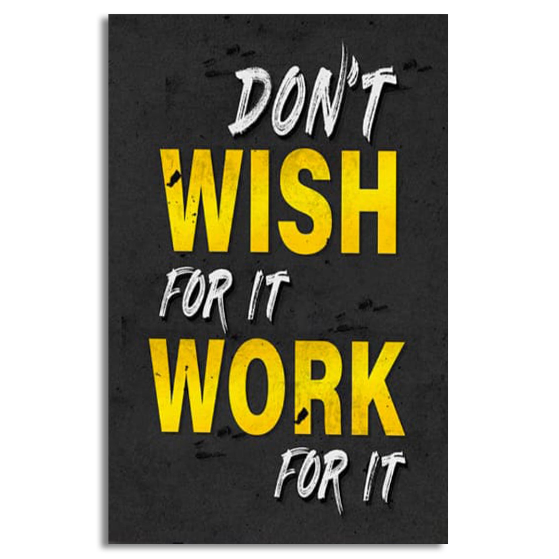 Add a motivational touch to your home or office with our "Don't Wish For It Work For It" canvas wall art. This piece features bold, inspiring text that encourages a proactive and hardworking mindset, making it a perfect addition to any space where motivation is key. The high-quality canvas and modern design make it a standout piece in your wall art collection. Ideal for offices, gyms, or any room that needs a boost of inspiration, this wall painting combines aesthetics and motivation. Enhance your decor with this powerful message and let it drive you to achieve your goals. Browse our selection of wall frames, wall decorations, and more at Wall Frames Pakistan for a complete