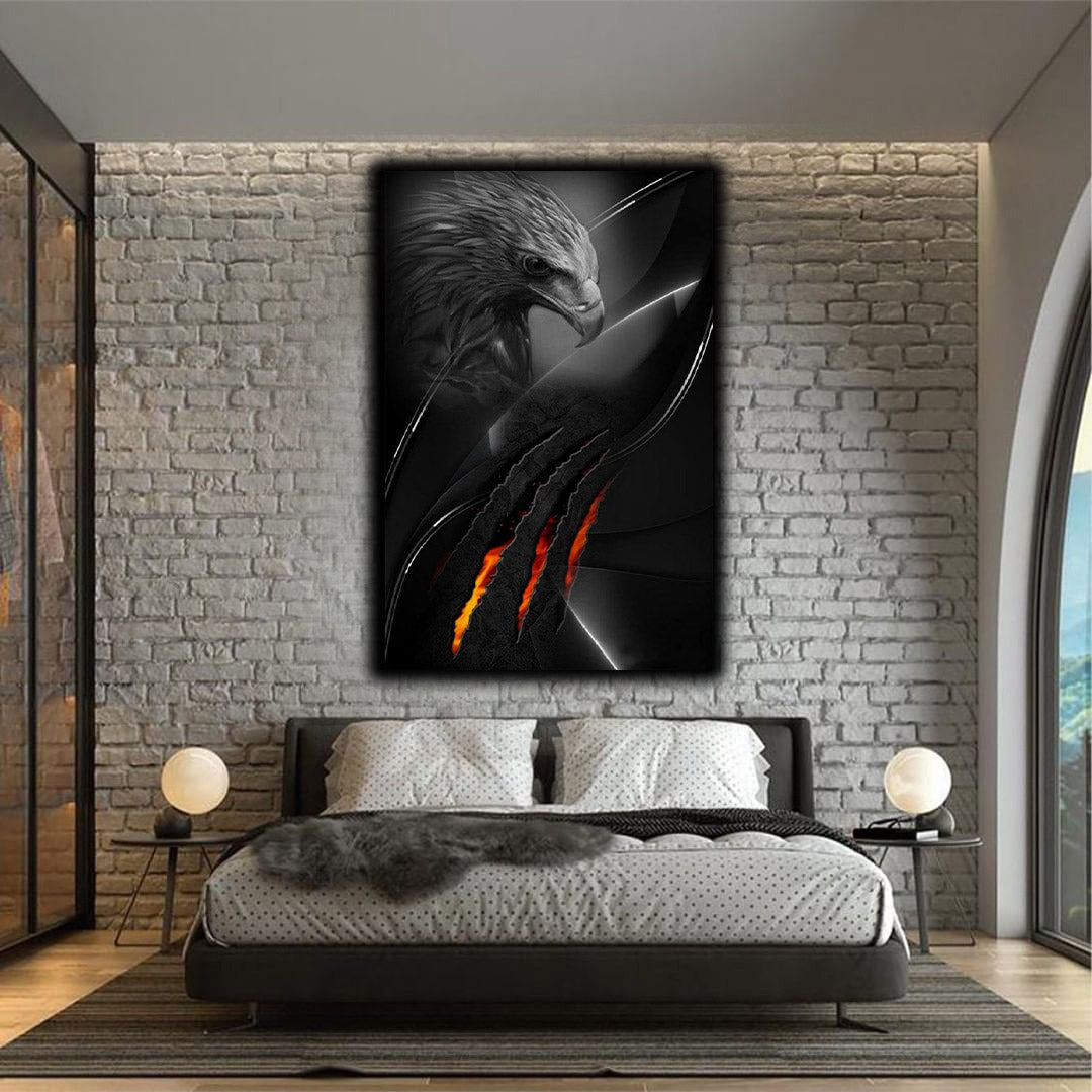 Unleash a fierce and majestic vibe with our "Eagle Portrait With Fire Wings" wall art. This dynamic piece captures the awe-inspiring beauty of an eagle with its wings set ablaze, creating a powerful focal point for any room. Perfect for those who appreciate bold wall art and striking wall decor, this canvas print adds a touch of intensity and grandeur to your interior. Ideal for enhancing living spaces, offices, or creative studios, this piece blends stunning artistry with high-quality canvas, making it a standout addition to your wall design. Ideal for framing or as a standalone piece, this wall art brings energy and elegance to any setting.