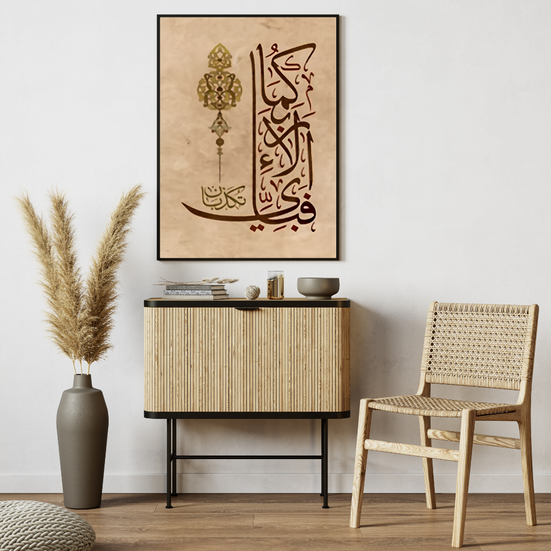 Elevate your home decor with the "Fabi-ayyi Ala-i Rabbikuma Tukaththiban" wall art, a remarkable piece that brings both elegance and inspiration to any space. This beautiful wall art painting features a blend of classic and contemporary styles, crafted to suit various interior designs. Available in multiple sizes and frame options, this canvas art piece is perfect for adding a sophisticated touch to your living room, bedroom, or office. Ideal for those who appreciate art that speaks to both the eye and the soul. Enhance your wall decor with this stunning addition, perfect for any room in your home.