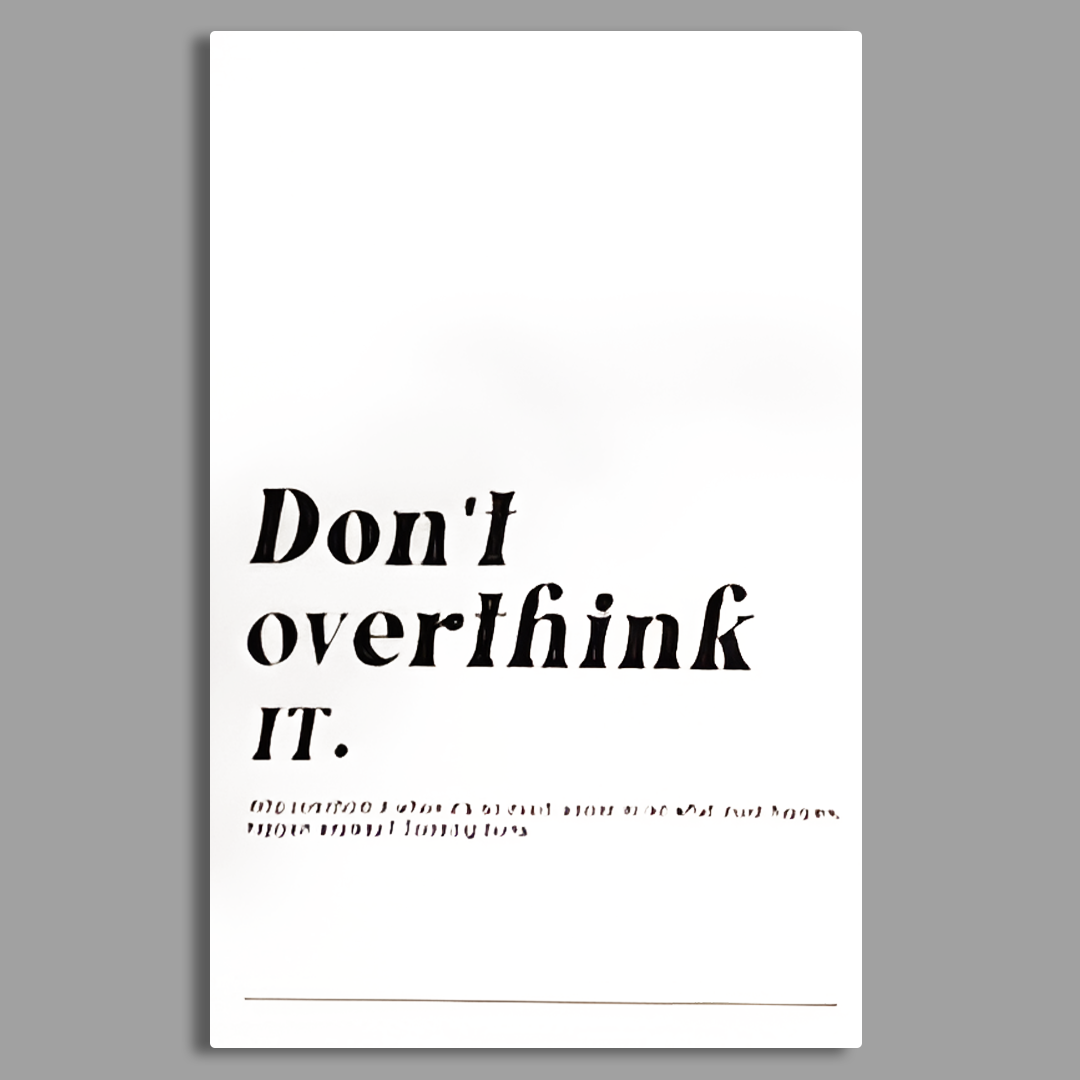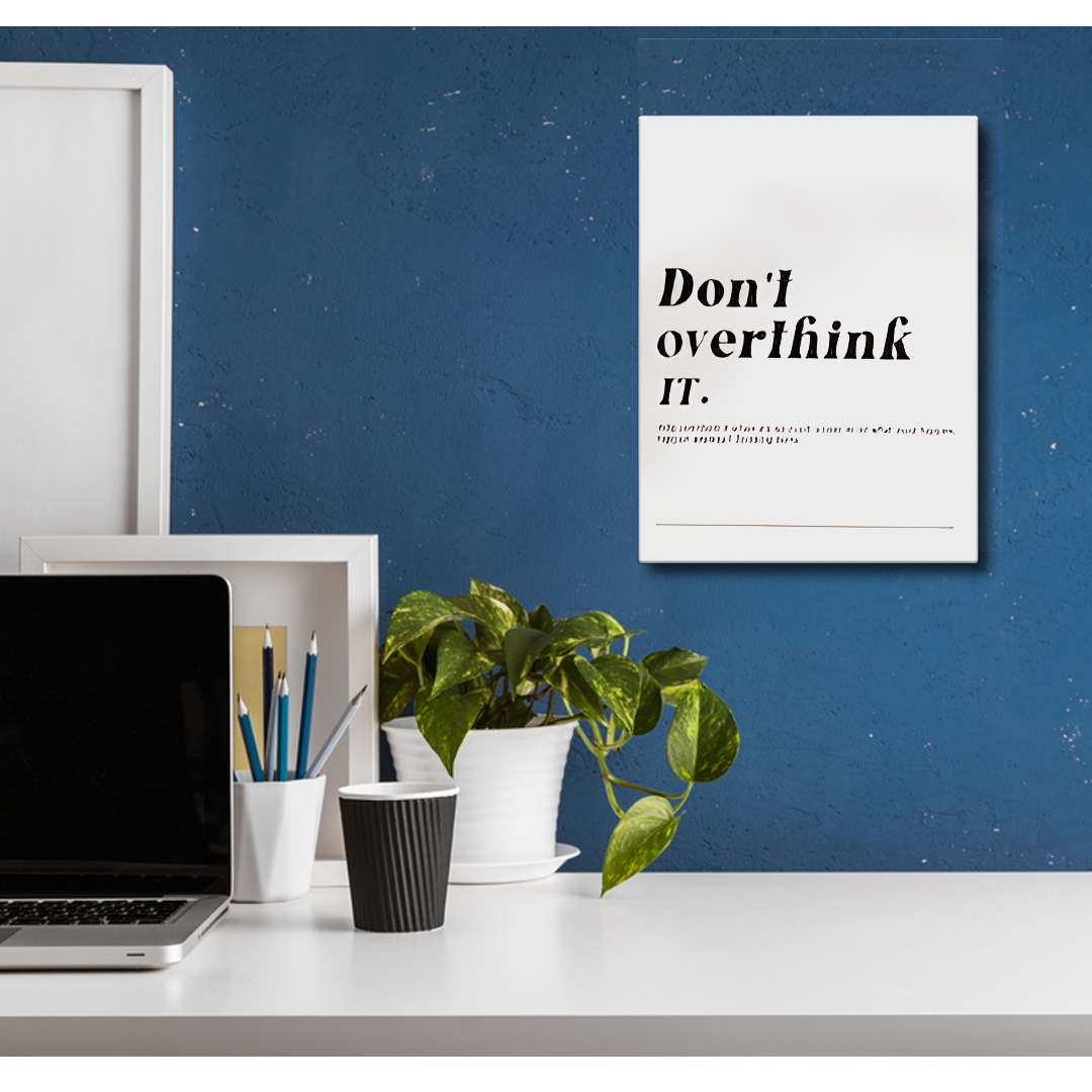 Transform your living space with our “Don't Overthink It” motivational quote wall art, a perfect blend of inspiration and modern decor. This eye-catching canvas art serves as a daily reminder to keep things simple and to not dwell on unnecessary thoughts. With its elegant design, it can effortlessly enhance any wall, making it an ideal addition to your home or office. Whether you hang it in your living room, bedroom, or workspace, this piece of wall art will not only beautify your surroundings but also inspire positivity in your daily life. Perfect for those seeking unique wall decor solutions, this artwork is a great choice for wall frames in Pakistan.
