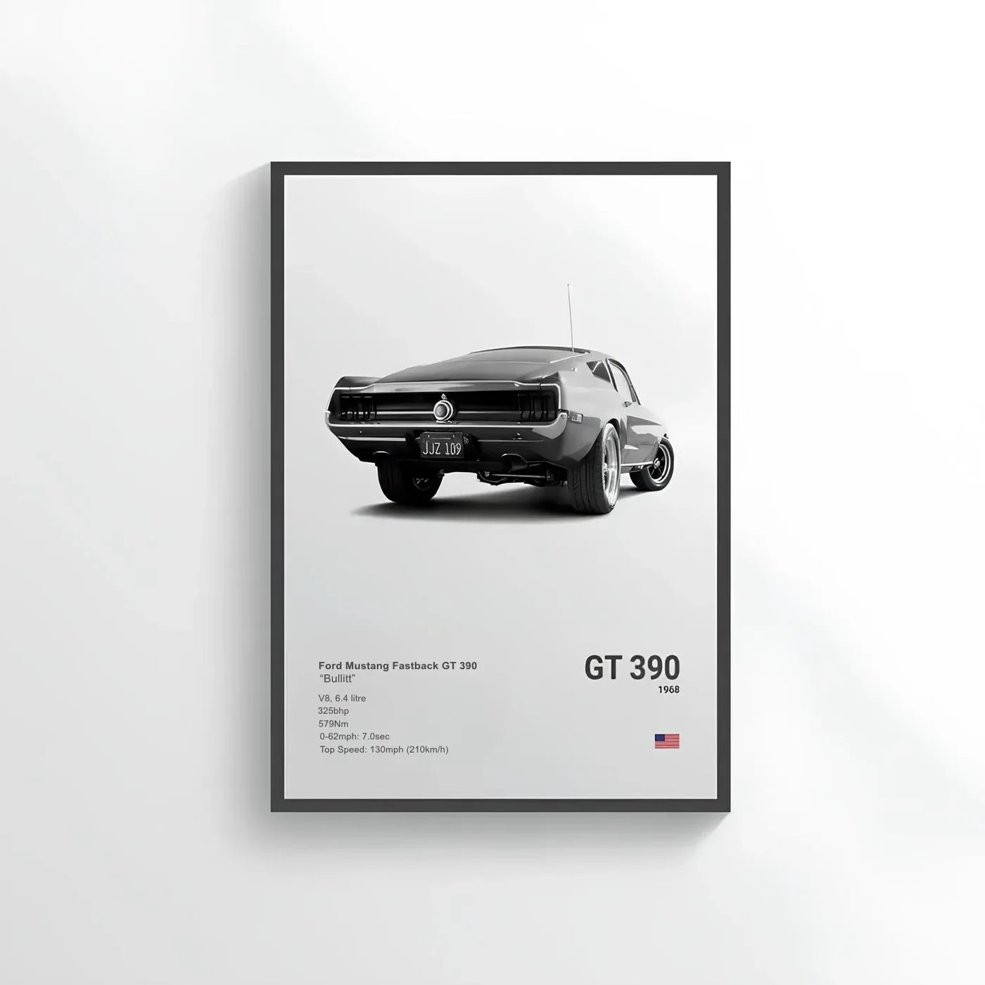 Celebrate the fusion of Formula 1 technology and hypercar performance with the FORD Mustang Fastback GT390 Poster. This premium-quality artwork captures the revolutionary hybrid design and aerodynamics of Mercedes’ ultimate hypercar, making it the perfect addition for car enthusiasts and collectors. Transform your space with a tribute to innovation and speed.