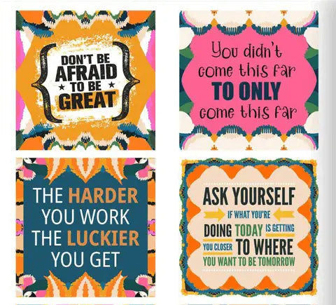 Add a touch of motivation and charm to your workspace with the FRIENDS Office Motivational Quotes (4 Panel) Wall Art. Designed to inspire and energize, this multi-panel canvas art piece displays powerful quotes that bring encouragement and positivity to your environment. Ideal for offices, study rooms, or creative spaces, this wall art enhances productivity while offering a sleek, modern aesthetic that seamlessly complements any decor style. The high-quality canvas and durable frames ensure longevity, making it a meaningful investment in both design and motivation. Explore this standout decor option for wall art painting, wall frames, and stylish photo frame designs, perfect for adding a motivational vibe to any setting in Pakistan.