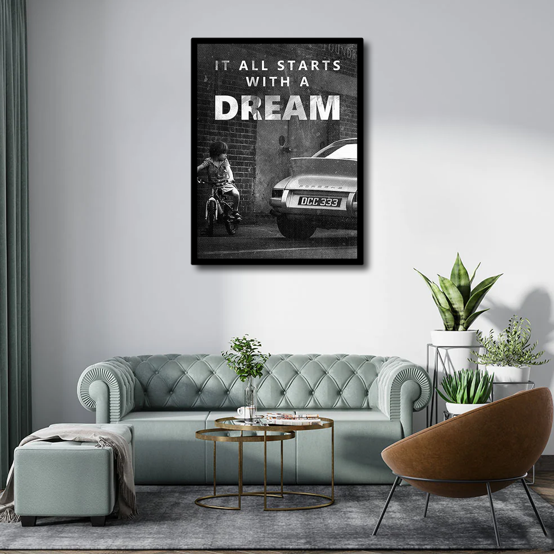 Transform your walls with a touch of motivation using the ‘It All Starts With A Dream’ canvas frame wall art. Designed for dreamers, this piece serves as a daily reminder that everything begins with a vision. Crafted with high-quality canvas and sturdy framing, this artwork is ideal for adding a motivational vibe to any room. Whether it’s for your home office, bedroom, or living room, this wall art painting is an excellent choice for modern wall decor. Enhance your decor with this captivating wall art design, perfect for inspiring and uplifting your space. Available in various sizes, this piece fits seamlessly into any decor style, making it a versatile addition to your collection.