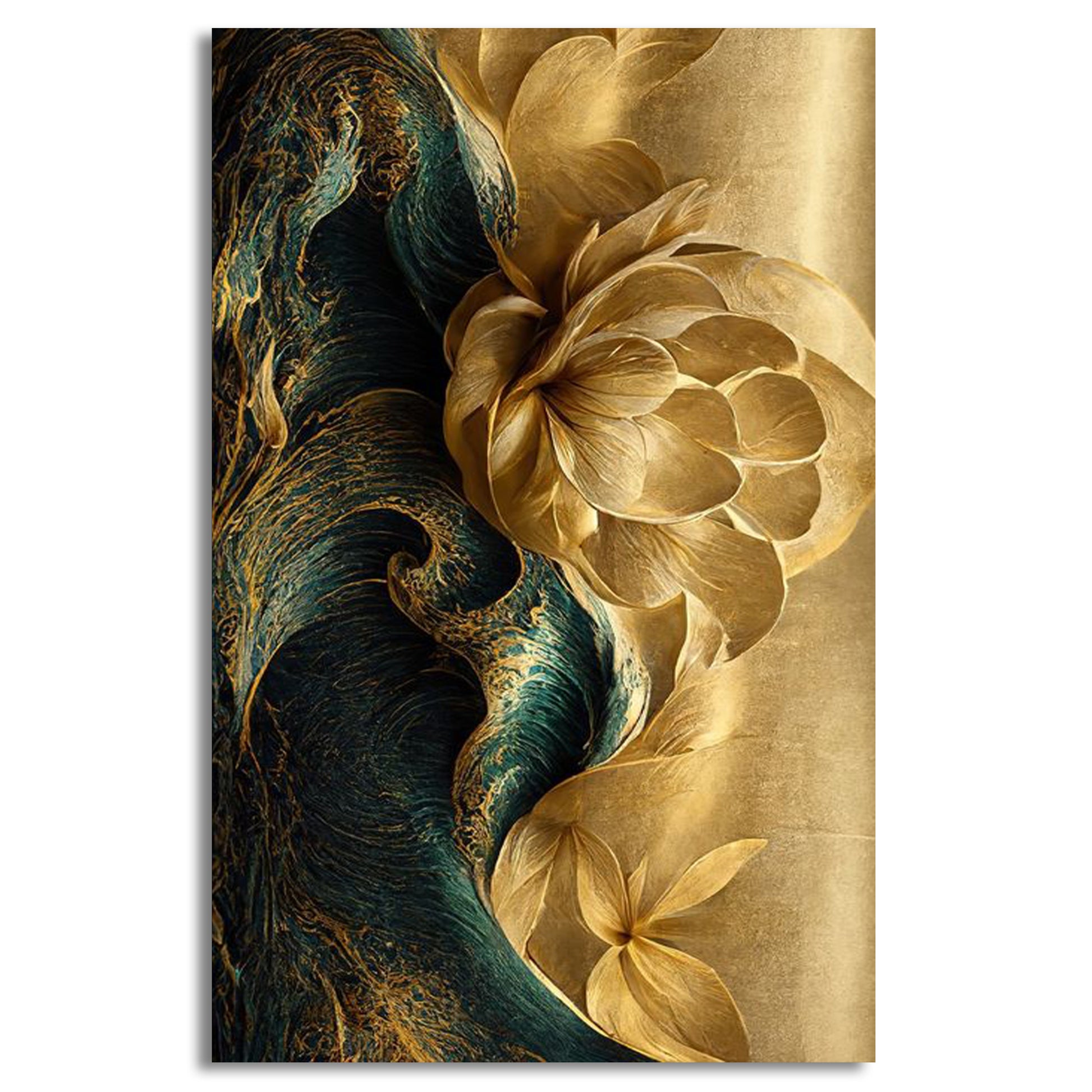 Elevate your home decor with the "Luxury Golden Flower" wall art. This captivating canvas painting features a radiant golden flower design that effortlessly combines elegance and modern style. Ideal for adding a touch of luxury to any room, this piece is perfect for those seeking a sophisticated wall decoration. Whether you're updating your living room, bedroom, or office, this wall art makes a striking addition. Designed to complement various interior styles, it’s a beautiful choice for enhancing your wall decor with a premium look. Add this exquisite piece to your collection and transform your space with a touch of opulence.