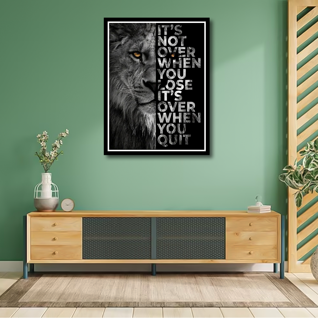 Unleash your inner strength with our Modern Lion Motivational Quote Canvas Frame | Wall Art. This captivating piece features a powerful lion alongside a motivational quote, symbolizing courage and determination. Crafted with premium canvas, this wall art painting is not just a decoration but a statement. Its bold design makes it an ideal choice for those looking to inspire and empower their surroundings. Whether you're decorating your home, office, or any other space, this wall art design adds a touch of sophistication and motivation. Perfect for those who value both aesthetics and inspiration, it also makes a thoughtful gift. Available in a range of sizes to fit any wall frame design, this art piece is a must-have for anyone seeking to enhance their decor with meaningful art.