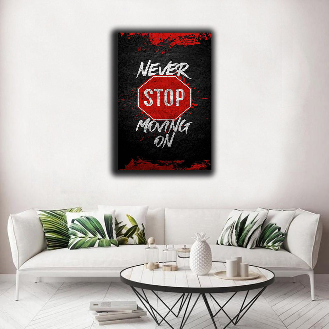 Embrace motivation and resilience with our "Never Stop Moving On" wall art. This captivating canvas print serves as a daily reminder to keep pushing forward, no matter the challenges. Featuring an elegant design that seamlessly blends with various decor styles, this inspirational wall art is perfect for enhancing your living space or office environment. The high-quality print on durable canvas ensures long-lasting beauty and impact, making it an excellent choice for anyone seeking to infuse their walls with positive energy and a touch of sophistication. Ideal for wall decor enthusiasts and those in need of a motivational boost.