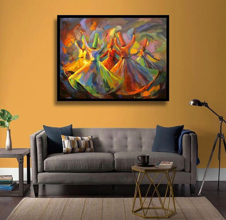 Transform your living space with the SUFI WALL HANGING ART Frames. This stunning wall art portrays the graceful and hypnotic twirl of the dervish, adding a unique touch of spirituality and sophistication to your home. The intricate design and rich colors make it an eye-catching centerpiece for any room. Ideal for wall decor, this canvas art piece brings a dynamic and serene ambiance to your space. Perfect for those who appreciate wall art design and canvas art that tells a story. Elevate your home with this elegant and spiritually uplifting wall decoration, crafted to fit seamlessly into your decor and frame design needs.