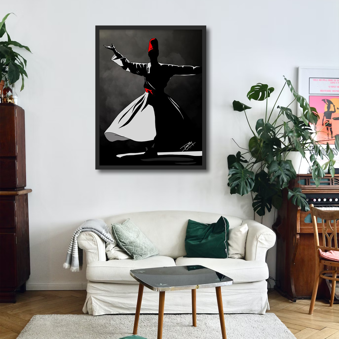 Elevate your wall decor with our Sufi Whirling Dance Canvas Frames, an exquisite piece of wall art that captures the spiritual essence of Sufi dance. The dynamic and mesmerizing design showcases the elegance and devotion of the Sufi whirling dance, adding a profound and artistic touch to any space. Crafted with high-quality canvas and vibrant colors, this wall painting is ideal for those looking to infuse their home or office with a sense of grace and inspiration. Ideal for adding character to living rooms, offices, or meditation spaces, this canvas art is a perfect blend of spiritual elegance and artistic design. Transform your wall with this unique piece of wall decoration and experience the beauty of Sufi dance every day.